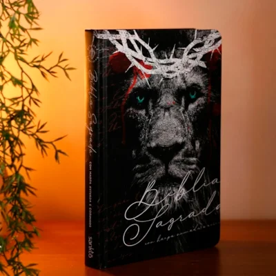 - Capa Dura: Design especial com ilustração do Leão e Coroa de Espinhos