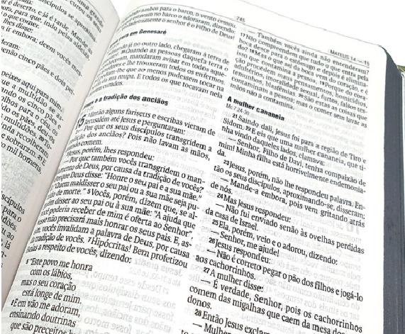 Contando com uma capa inovadora e jovem, borda arredondada e fitilho duplo para facilitar a marcação na hora da leitura, estudo ou até mesmo durante o culto.