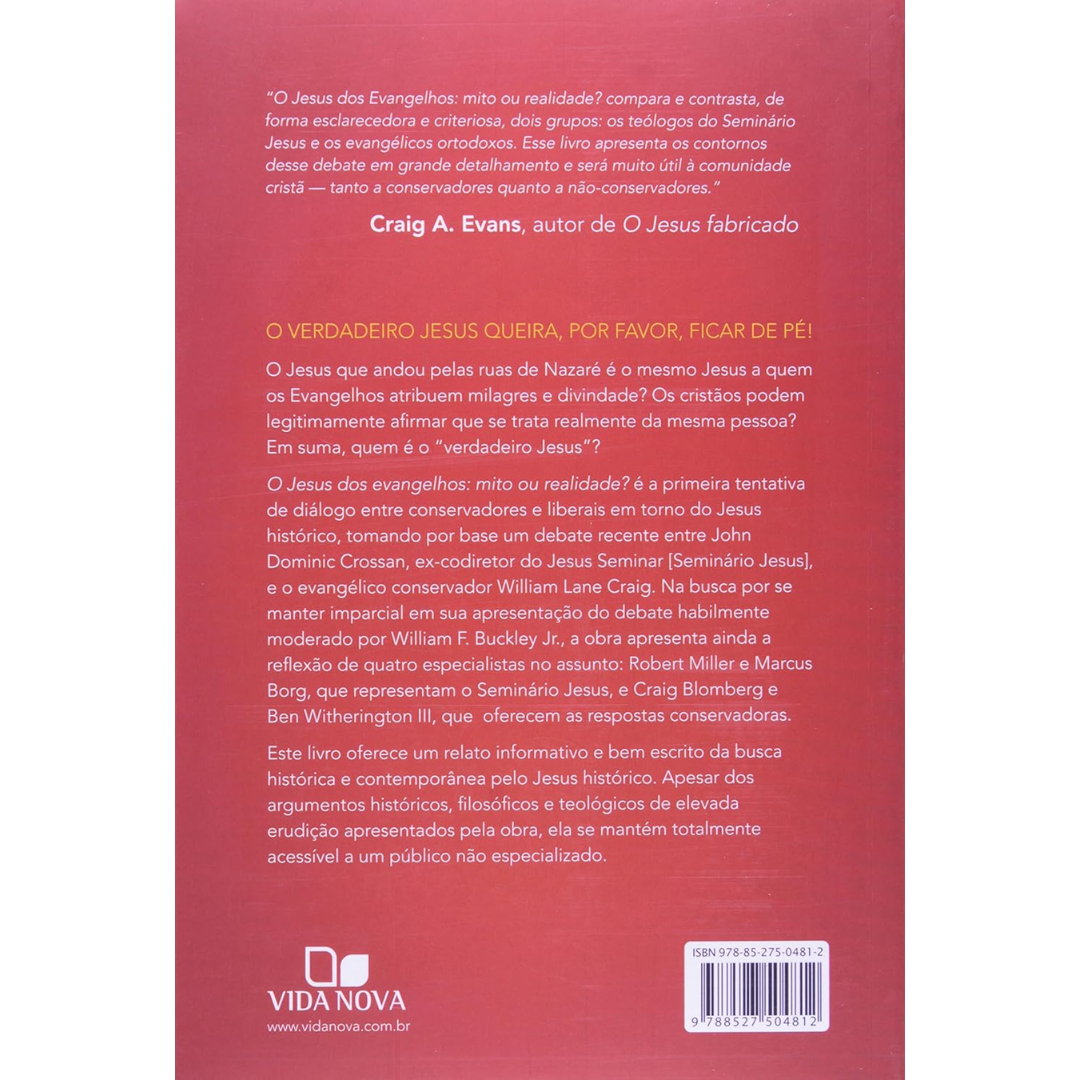 Este livro é a primeira tentativa de diálogo entre conservadores e liberais em torno do Jesus histórico, tomando por base um debate recente entre John Dominic Crossan, ex-codiretor do Jesus Seminar [Seminário Jesus], e o evangélico conservador William Lane Craig. Na busca por se manter imparcial em sua apresentação do debate habilmente moderado por William F. Buckley Jr., a obra apresenta ainda a reflexão de quatro especialistas no assunto: Robert Miller e Marcus Borg, que representam o Seminário Jesus, e Craig Blomberg e Ben Witherington III, que oferecem as respostas conservadoras.
